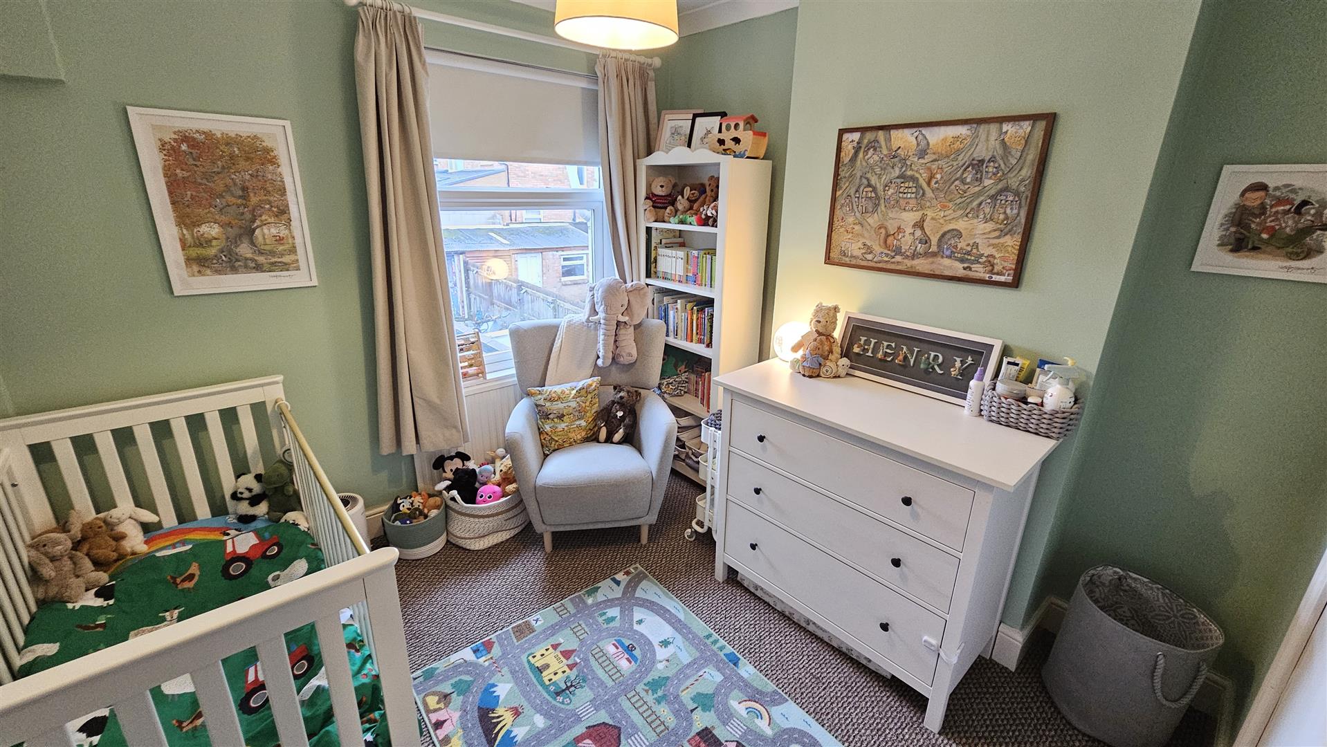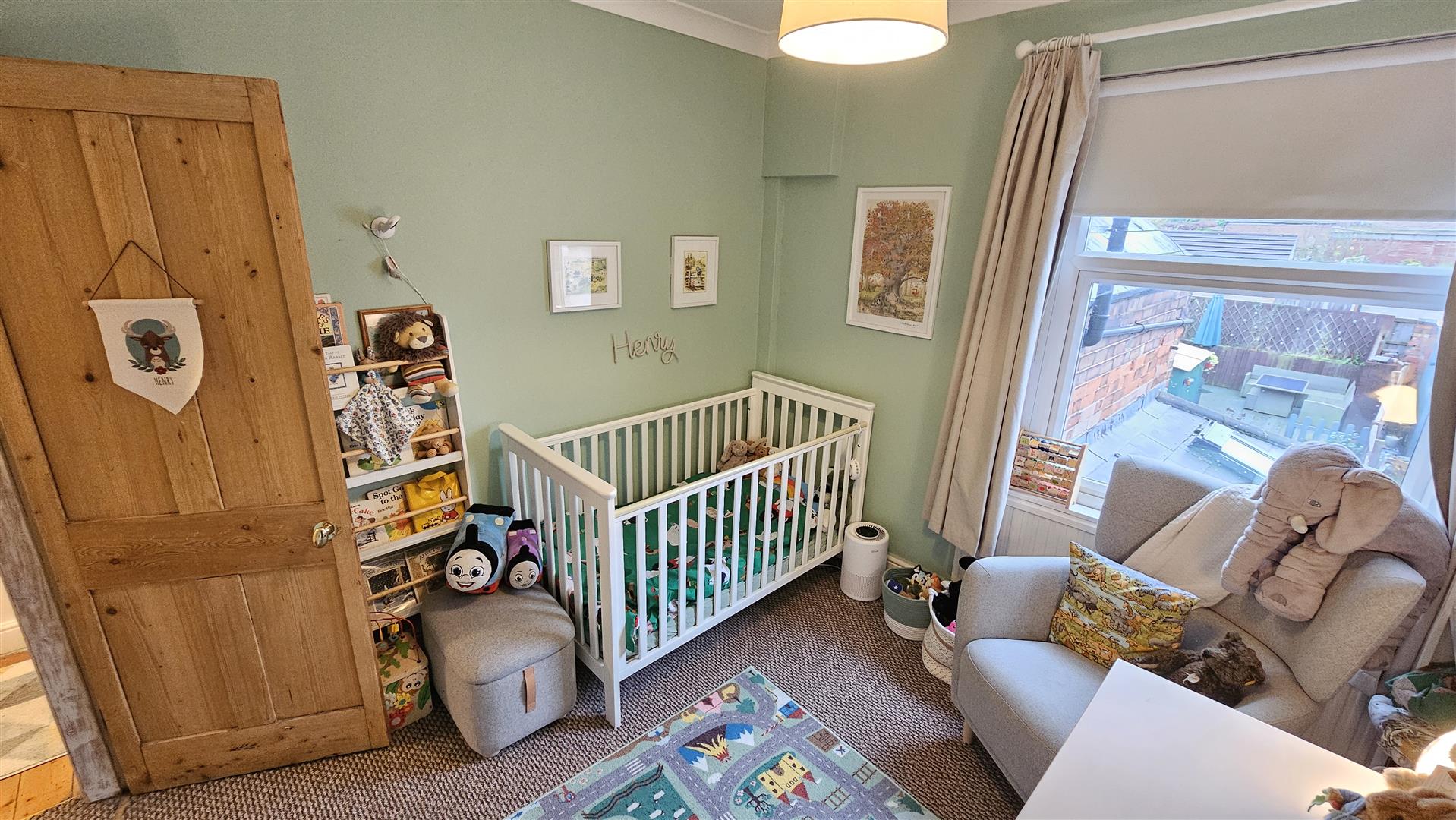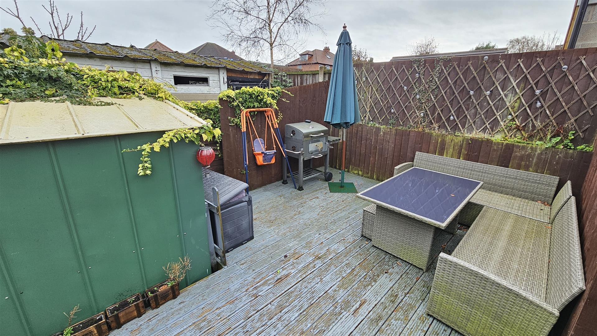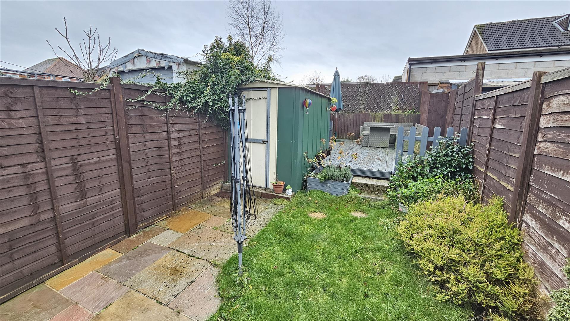 To the rear is a sensibly landscaped and fully enclosed garden that is laid to lawn, with an extended area of patio for al fresco dining and entertaining with both a decking and fenced boundaries to enable secure play for little ones.