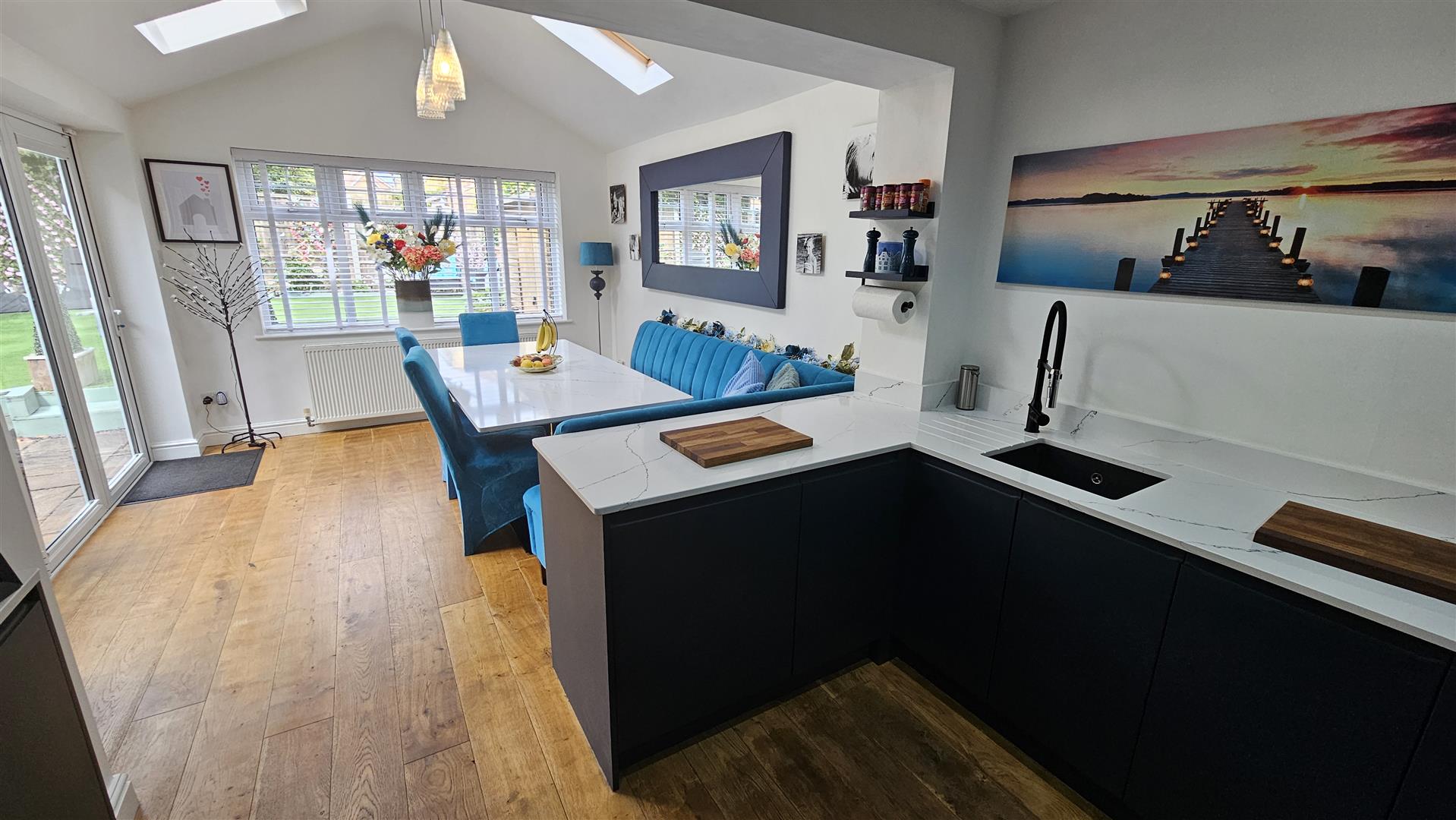 A new home in an old shell.... following upgrades throughout with a new kitchen, new bathroom, new shower room and downstairs cloakroom... all beautifully presented with a Boutique Hotel quality to the washing facilities. The décor throughout is one of a stylish design and finish... with the most easiest to maintain and landscaped rear garden that we have seen this year; fully enclosed, westerly facing to ensure afternoon and evening sunshine and with an artificial lawn and well stocked planted borders.